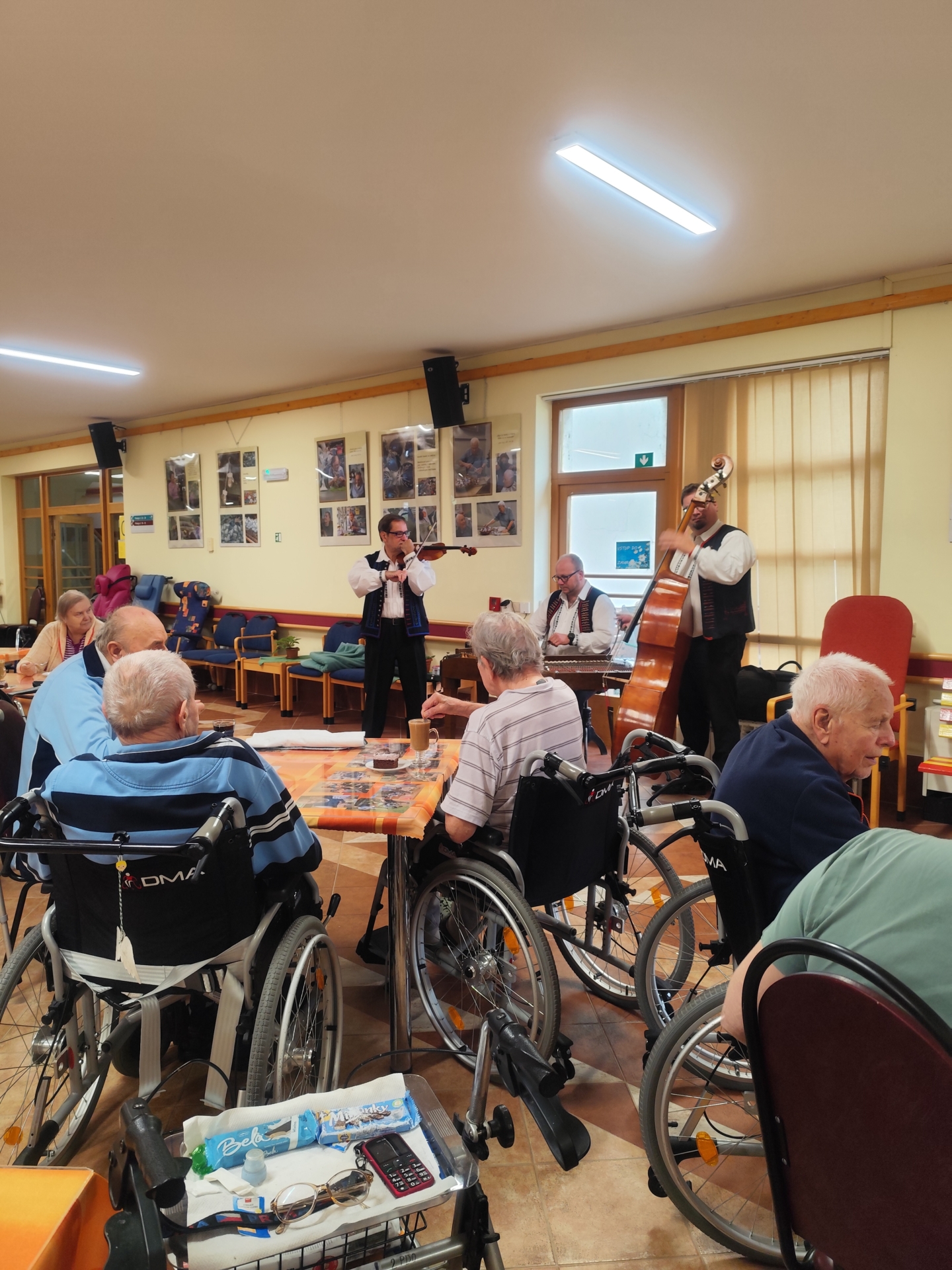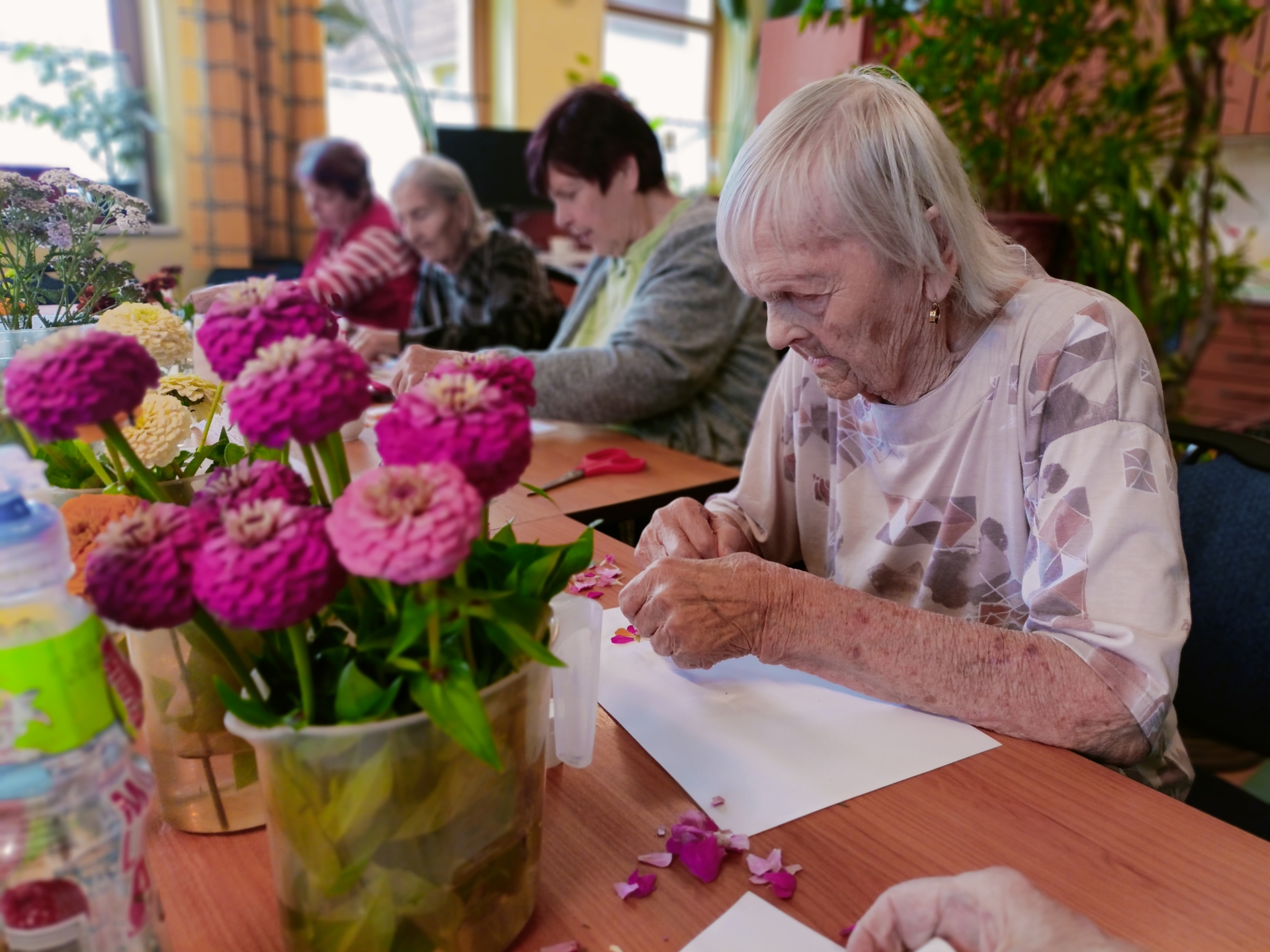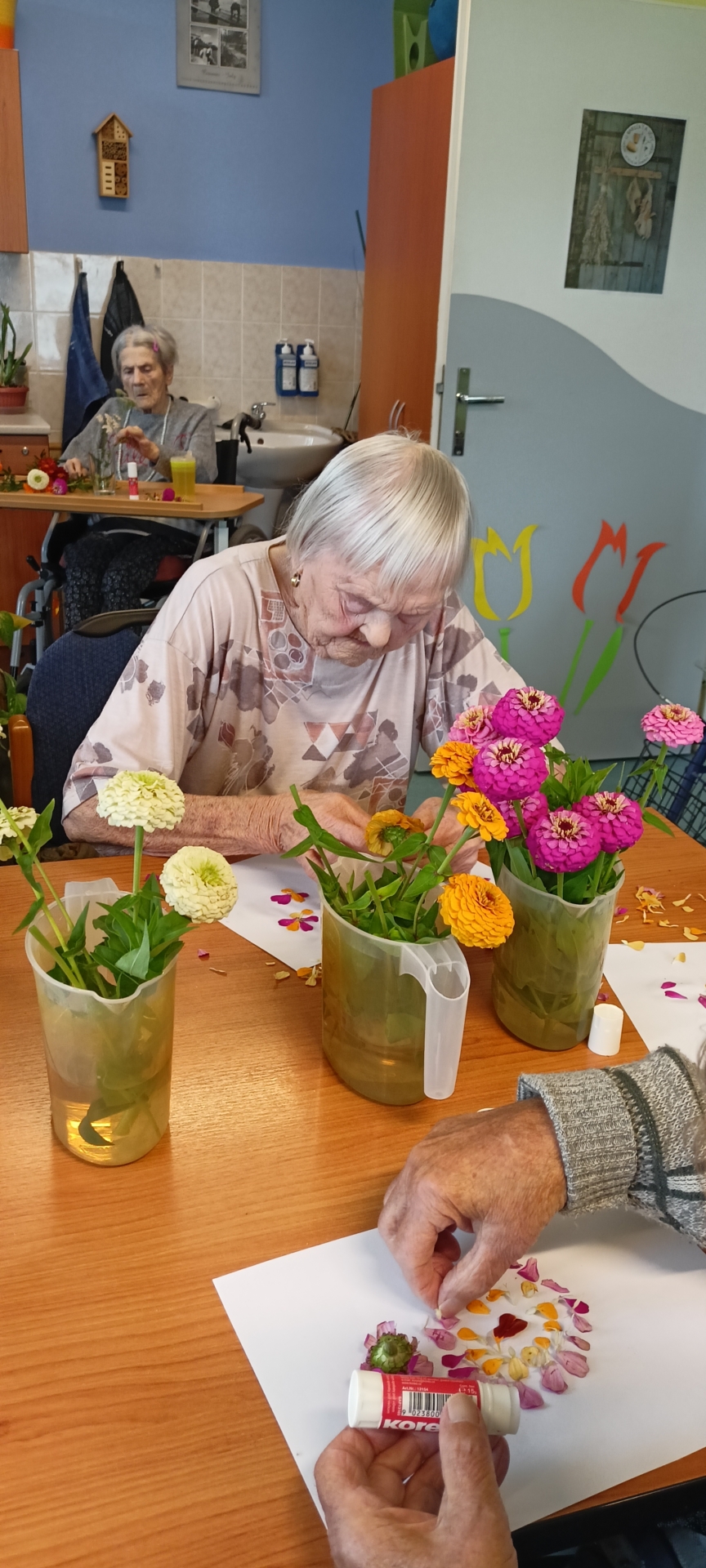 Po necelém měsíci Vás opět informujeme o dění u nás v Domově důchodců. Kromě pravidelných a klasických aktivit uživatelé mohli navštívit zahradní terapii, která byla zaměřena na zpracování a vytváření různých výrobků z květů rostlin. Vznikaly tak velmi zajímavé a hezké výtvory. Pravidelně každé úterý si uživatelé vychutnávají kávu a moučník, někdy je to štrúdl jindy zase muffiny či něco úplně jiného, nicméně vždy si velmi pochutnají. Navštívila nás také koťátka a pejsek na canisterapii. Zvířecí mazlíčky si vždy užíváme na maximum. Zúčastnili jsme se také Dne seniorů v nedalekém Hankově domě, kde jsme si užili koncert s názvem Recitál s vůní fialek. Z Brna dorazila i Cimbálovka, se kterou jsme si krásně všichni zazpívali. S některými jsme v rámci individuálních aktivit společně řízkovali levandule či se zabavili pouštěním draků, kdy jsme využili větrné počasí. Včera jsme navštívili Pohádkovou stezku okolo rybníku Pardoubek v Lázních Bělohrad. Užili jsme si hezké počasí a obdivovali jsme řezbářské umění umělců, kteří zde vymodelovali sochy, které lemují celý prostor okolo rybníku. Celý výlet jsme zakončili u kávy a zákusku v nedaleké cukrárně. Minulý týden někteří využili možnosti odevzdat svůj hlas ve volbách do Poslanecké sněmovny. Volební komise přinesla urnu přímo k nám do Domova.