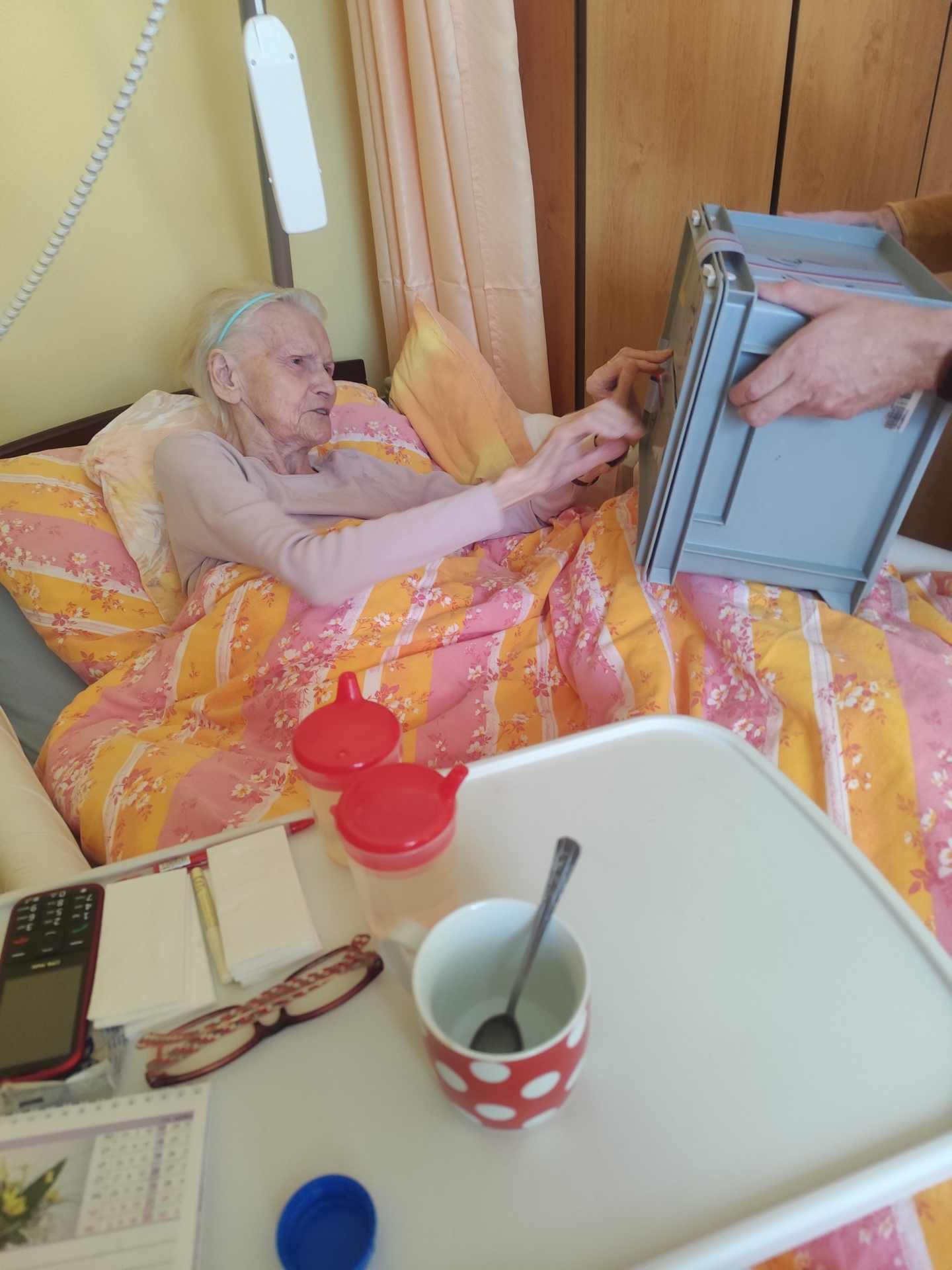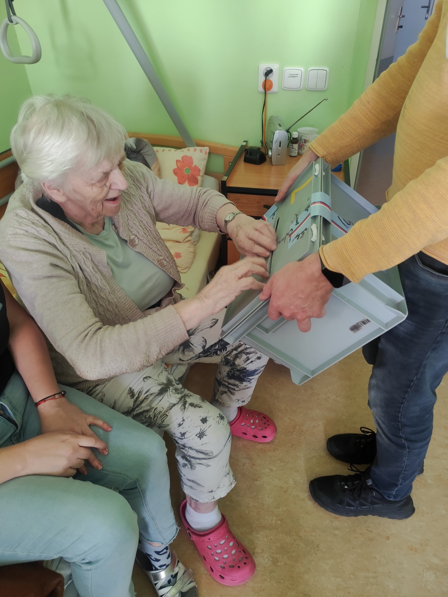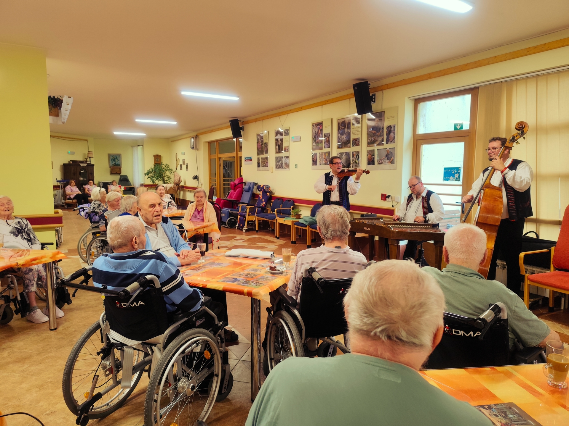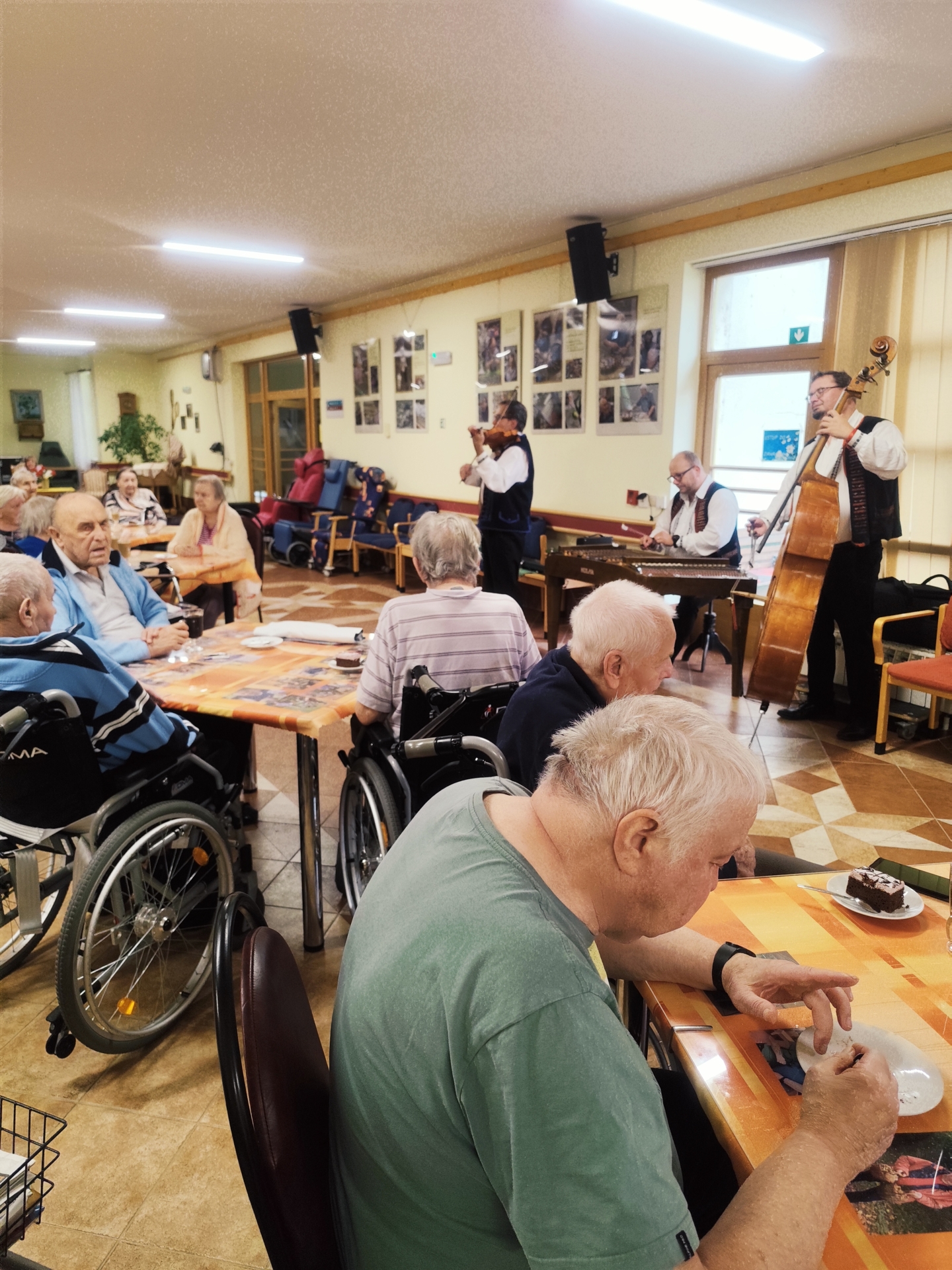 Po necelém měsíci Vás opět informujeme o dění u nás v Domově důchodců. Kromě pravidelných a klasických aktivit uživatelé mohli navštívit zahradní terapii, která byla zaměřena na zpracování a vytváření různých výrobků z květů rostlin. Vznikaly tak velmi zajímavé a hezké výtvory. Pravidelně každé úterý si uživatelé vychutnávají kávu a moučník, někdy je to štrúdl jindy zase muffiny či něco úplně jiného, nicméně vždy si velmi pochutnají. Navštívila nás také koťátka a pejsek na canisterapii. Zvířecí mazlíčky si vždy užíváme na maximum. Zúčastnili jsme se také Dne seniorů v nedalekém Hankově domě, kde jsme si užili koncert s názvem Recitál s vůní fialek. Z Brna dorazila i Cimbálovka, se kterou jsme si krásně všichni zazpívali. S některými jsme v rámci individuálních aktivit společně řízkovali levandule či se zabavili pouštěním draků, kdy jsme využili větrné počasí. Včera jsme navštívili Pohádkovou stezku okolo rybníku Pardoubek v Lázních Bělohrad. Užili jsme si hezké počasí a obdivovali jsme řezbářské umění umělců, kteří zde vymodelovali sochy, které lemují celý prostor okolo rybníku. Celý výlet jsme zakončili u kávy a zákusku v nedaleké cukrárně. Minulý týden někteří využili možnosti odevzdat svůj hlas ve volbách do Poslanecké sněmovny. Volební komise přinesla urnu přímo k nám do Domova.