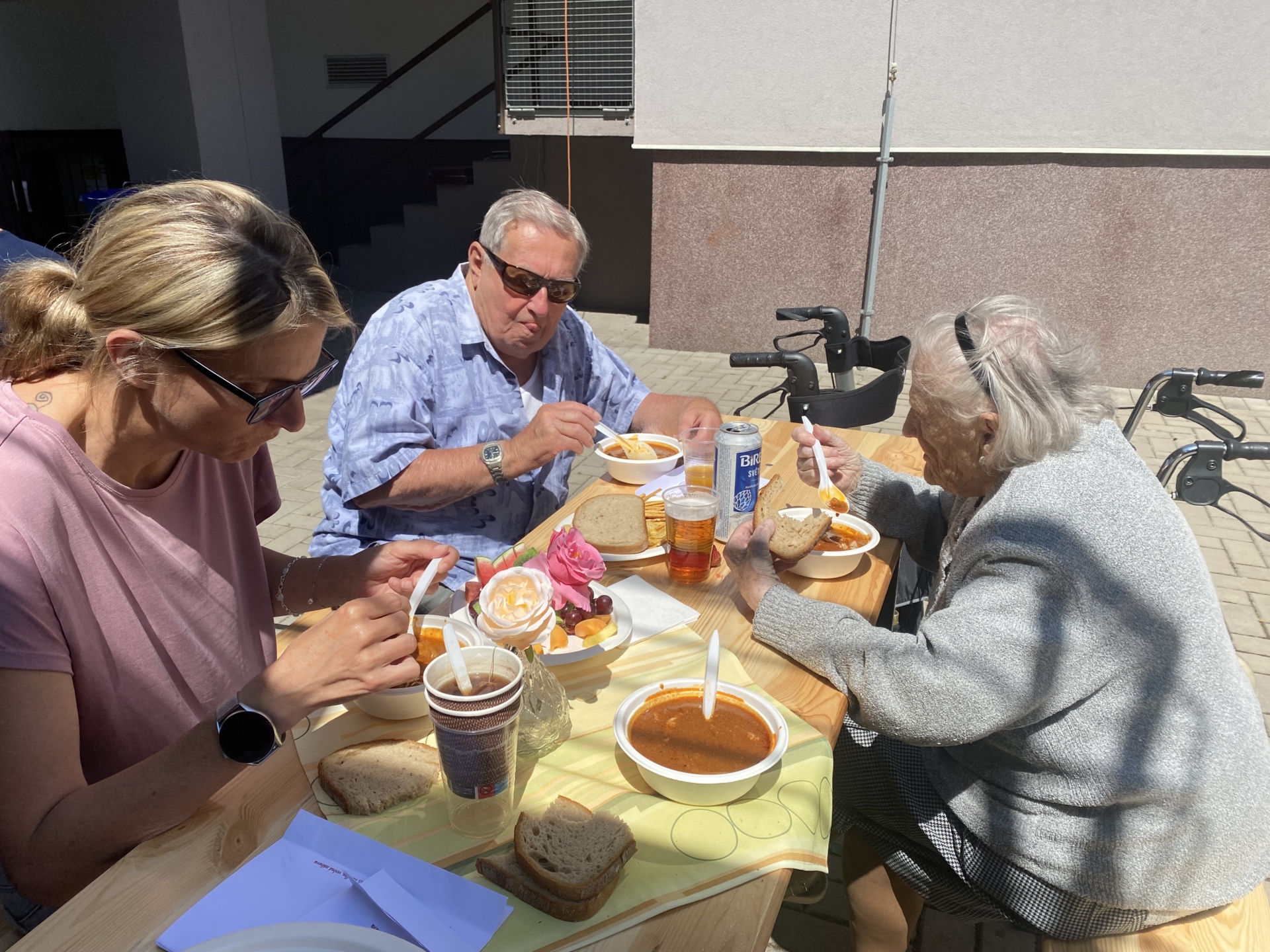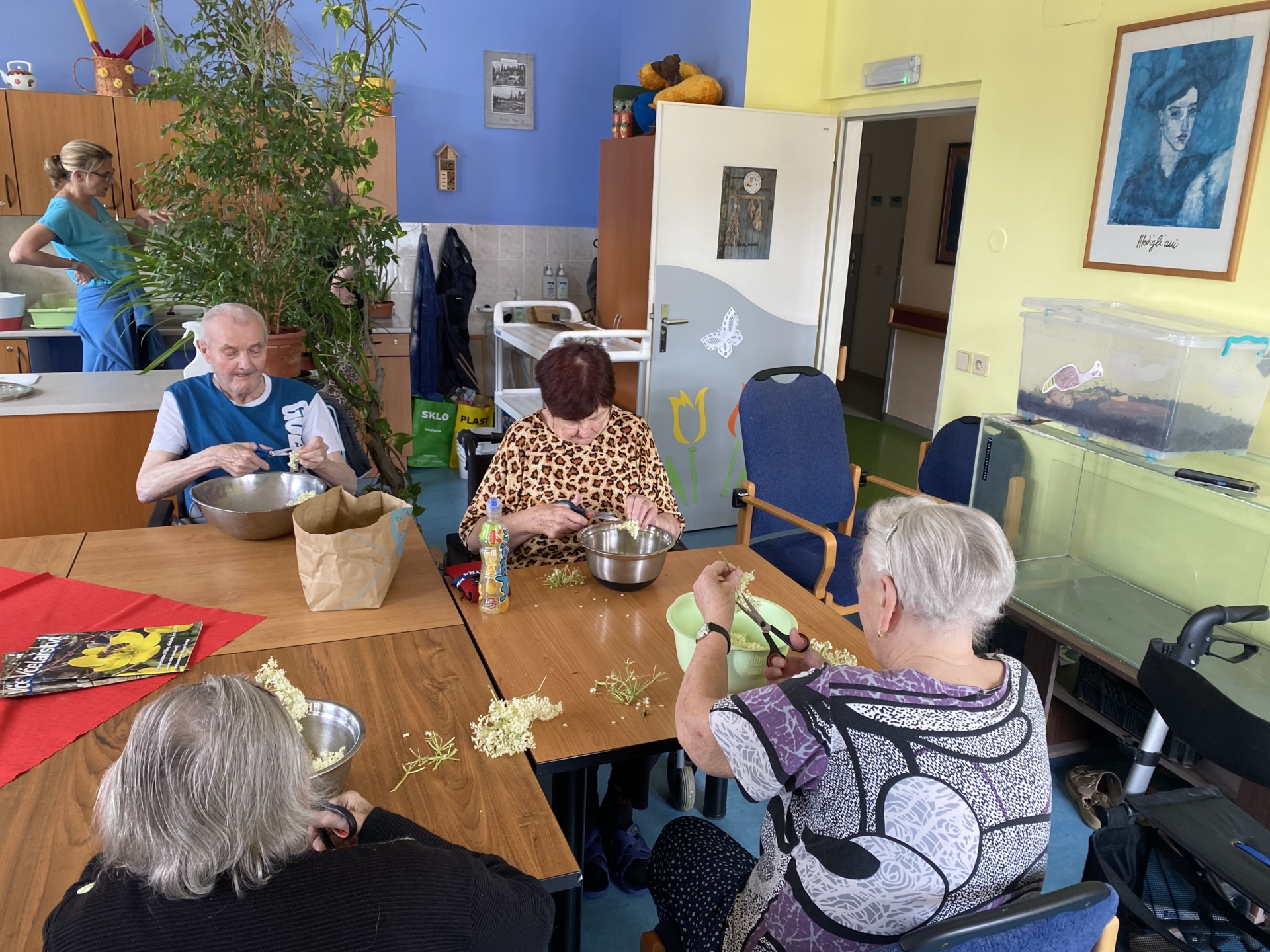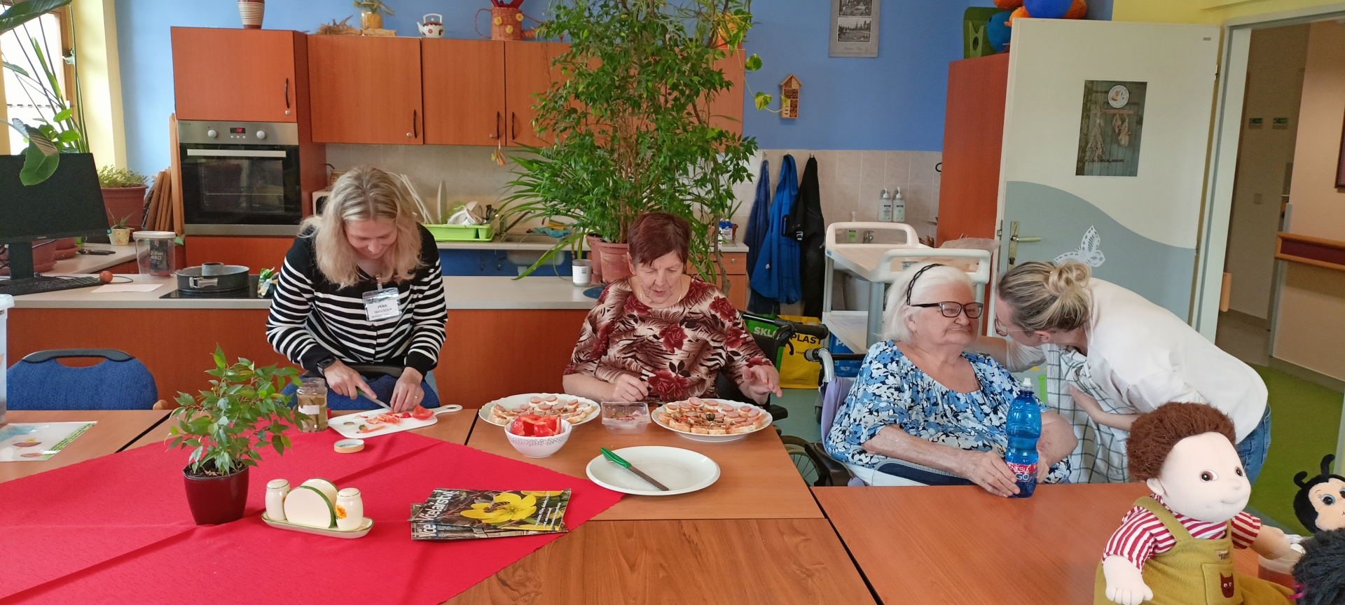 Po delší době se vám opět hlásíme s informacemi z našeho Domova. Nicméně všechny větší akce dostaly prostor v rámci jednotlivých příspěvků, tak se nyní zaměříme na ty ostatní. S uživateli jsme byli povzbudit děti z mateřských škol při fotbalovém turnaji na místním stadiónu. Děti se moc snažily a byly k vidění úctyhodné výkony. Navštívili jsme místní Galerii minerálů, kde jsme obdivovali velkou sbírku všemožných minerálů různých barev a tvarů, až nás z toho všeho přecházel zrak. Navštívila nás paní Vondráčková, která nám povídala o svých cestovatelských zážitcích z Číny, převážně z Šanghaje. Přinesla s sebou i několik pro Čínu typických věcí, což bylo pro naše uživatele velmi zajímavé. Již nyní se těšíme na další povídání, které by tentokrát mělo být o Portugalsku. Kromě pravidelných aktivit jsme často využívali hezké počasí a chodili společně ven, do města, do restaurací, na kafíčko, zavítali jsme, ale i na trhy na náměstí či jen tak na zahradu Domova. Vydali jsme se i na sběr bezu, ze kterého jsme si následně připravili výborné bezové řízky. Nezapomněli jsme ani na narozeniny, svátky a jubilea našich obyvatel, se kterými jsme to vždy patřičně oslavili a popřáli jim hlavně hodně zdraví. Včera jsme se zúčastnili Sportovních her v nedalekém Domově pro seniory v Pilníkově. Zde jsme si skvěle zasoutěžili a dokonce p. Kretschmer obsadil 3. místo v kuželkách, gratulujeme! Velmi děkujeme personálu Domova v Pilníkově, bylo o nás krásně postaráno a vše bylo připravené na jedničku, celý den jsme se moc užili. Již nyní se těšíme na příští rok.