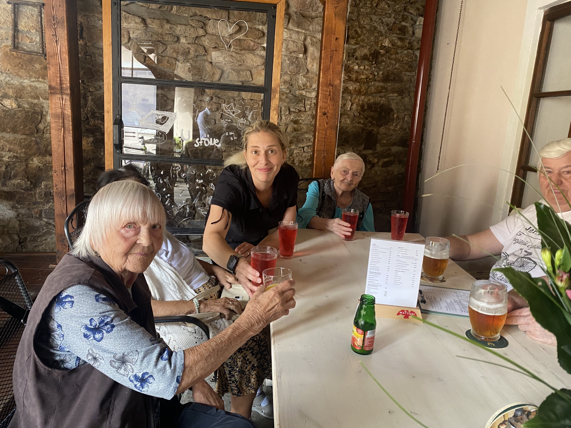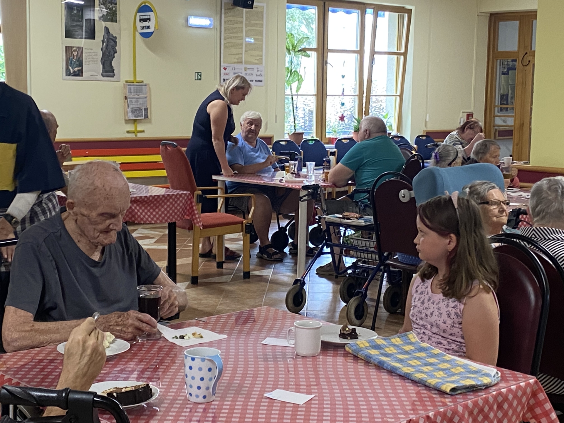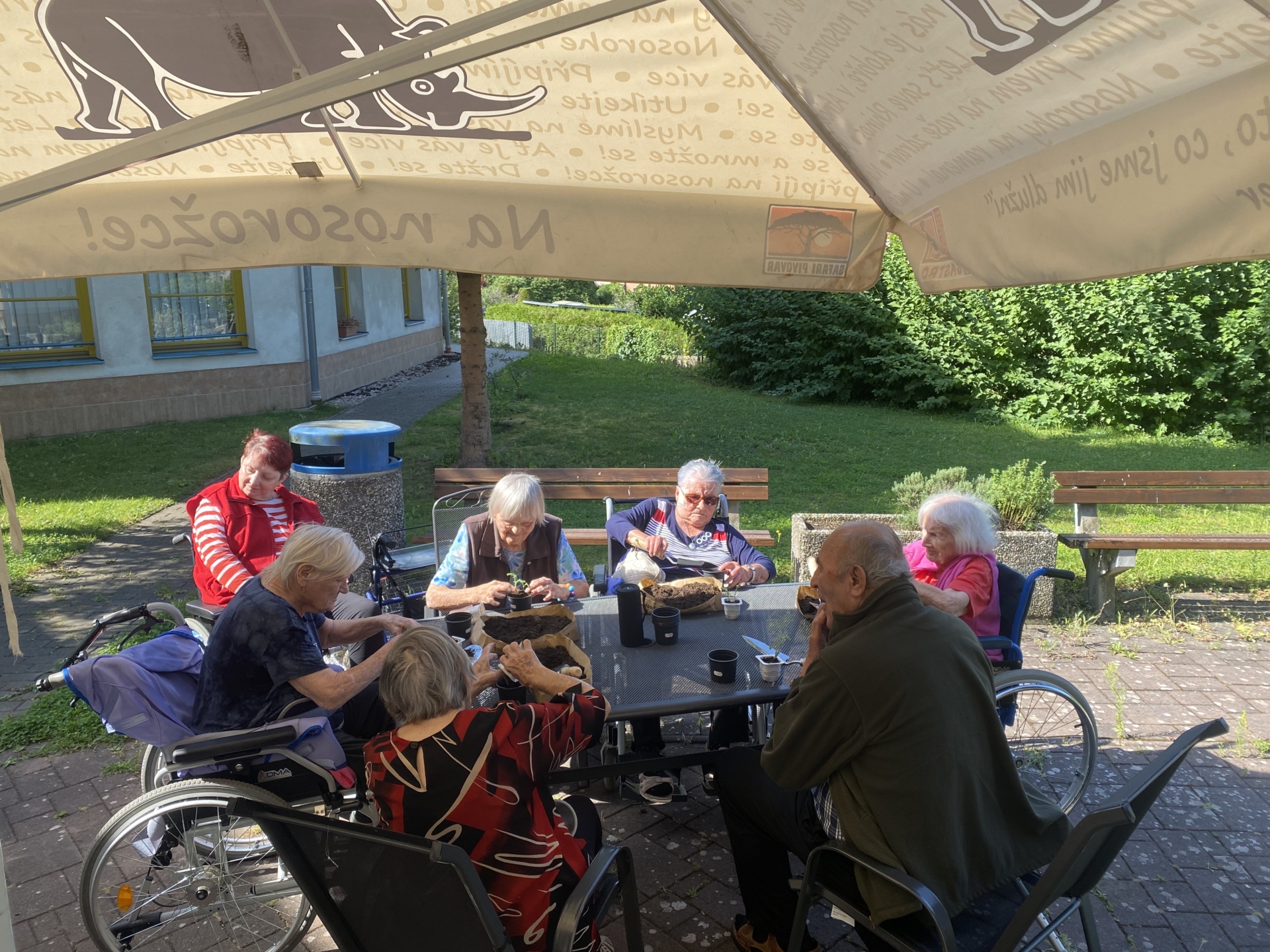 Pomalu se nám chýlí prázdniny do svého konce, nicméně u nás v Domově se to různými akcemi a aktivitami jen hemží. Pravidelně se nám tu každý týden střídá kavárnička se zmrzlinovými poháry. Uživatelé si tak mohou pochutnat na dobré kávě, zákusku či chlebíčku a další týden zase na zmrzlině s ovocným rozvarem a šlehačkou, která v těchto horkých letních dnech je velký hit. Jednou za 14 dní ve středu dopoledne nám zaváží nákupy dovážková služba Rohlik.cz, se kterou jsme spokojeni a vše funguje, jak má. Jak jsme již psali v minulých příspěvcích konala se Zahradní slavnost, navštívili jsme restauraci naší bývalé pracovnice Jany a postavili si retro stan, kde jsme s uživateli strávili volný čas. Nezapomněli jsme ani na oslavu červencových narozenin našich uživatelů, někteří se v rámci individuálních aktivit dočkali i vlastního narozeninového dortu. Navštívila nás paní kadeřnice, která nám vypomohla přes prázdniny, od září by k nám opět měli chodit studenti místní kadeřnické školy. Uživatelé si také mohli zahrát nějakou ze společenských her při Dopoledním klubu či zasoutěžit a zkusit své štěstí při hře Bingo. Proběhla také Zahradní terapie, kde jsme pracovali s bylinkami. Při individuálních aktivitách jsme vyrazili do města ke své kadeřnici i si odpočinout na zahradu Nikolky. Dnes nás navštívili prodejci textilu, takže si uživatelé mohou obměnit šatník a koupit nějaké pěkné nové kousky. V pondělí budeme moci ochutnat letošní burčák a ve středu nám dorazí zazpívat pan Slavík, tak se již na obě menší akce těšíme. Užijte si posledních pár dnů prázdnin.
