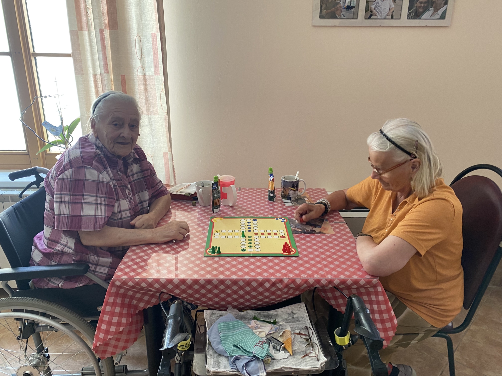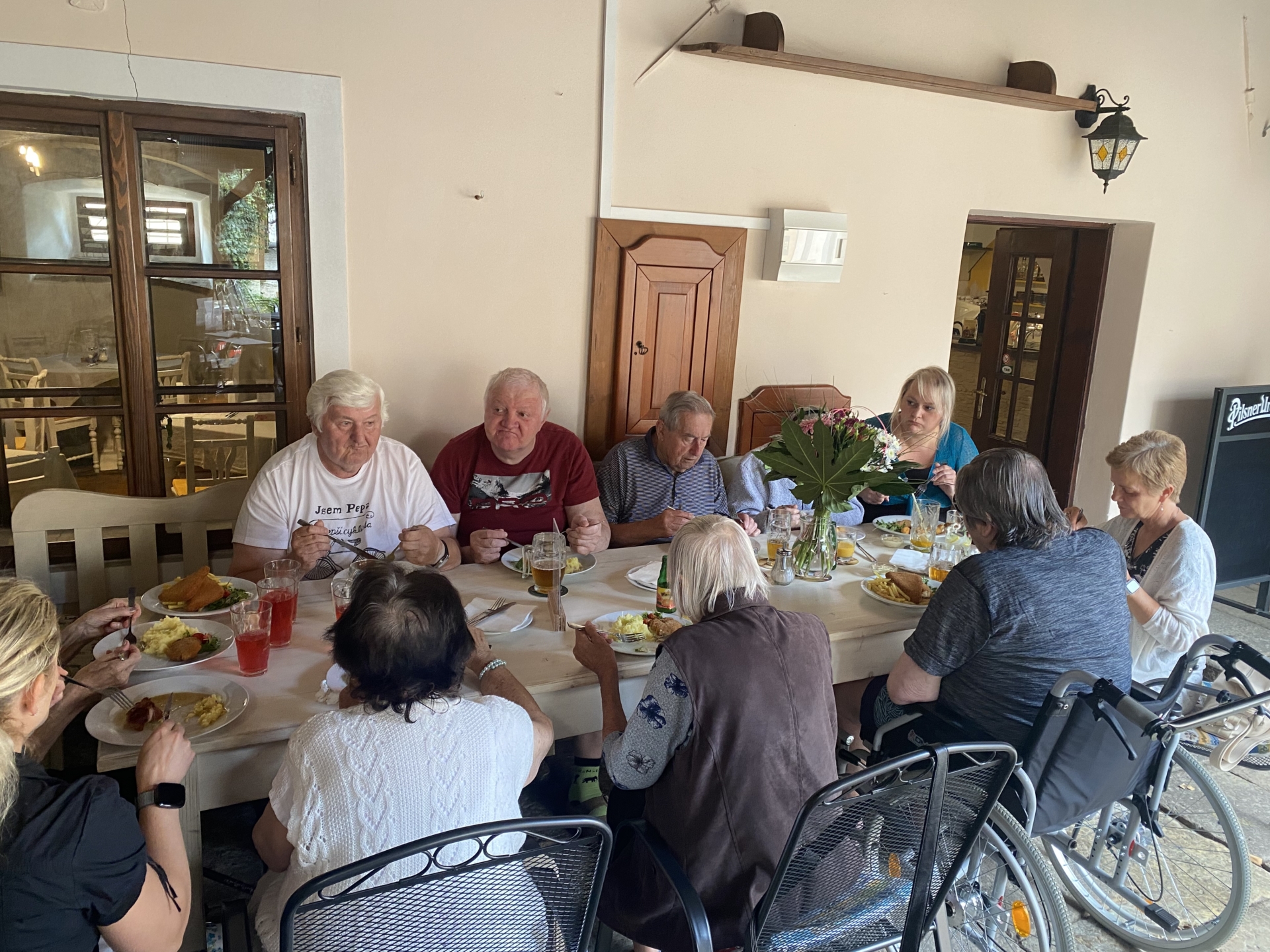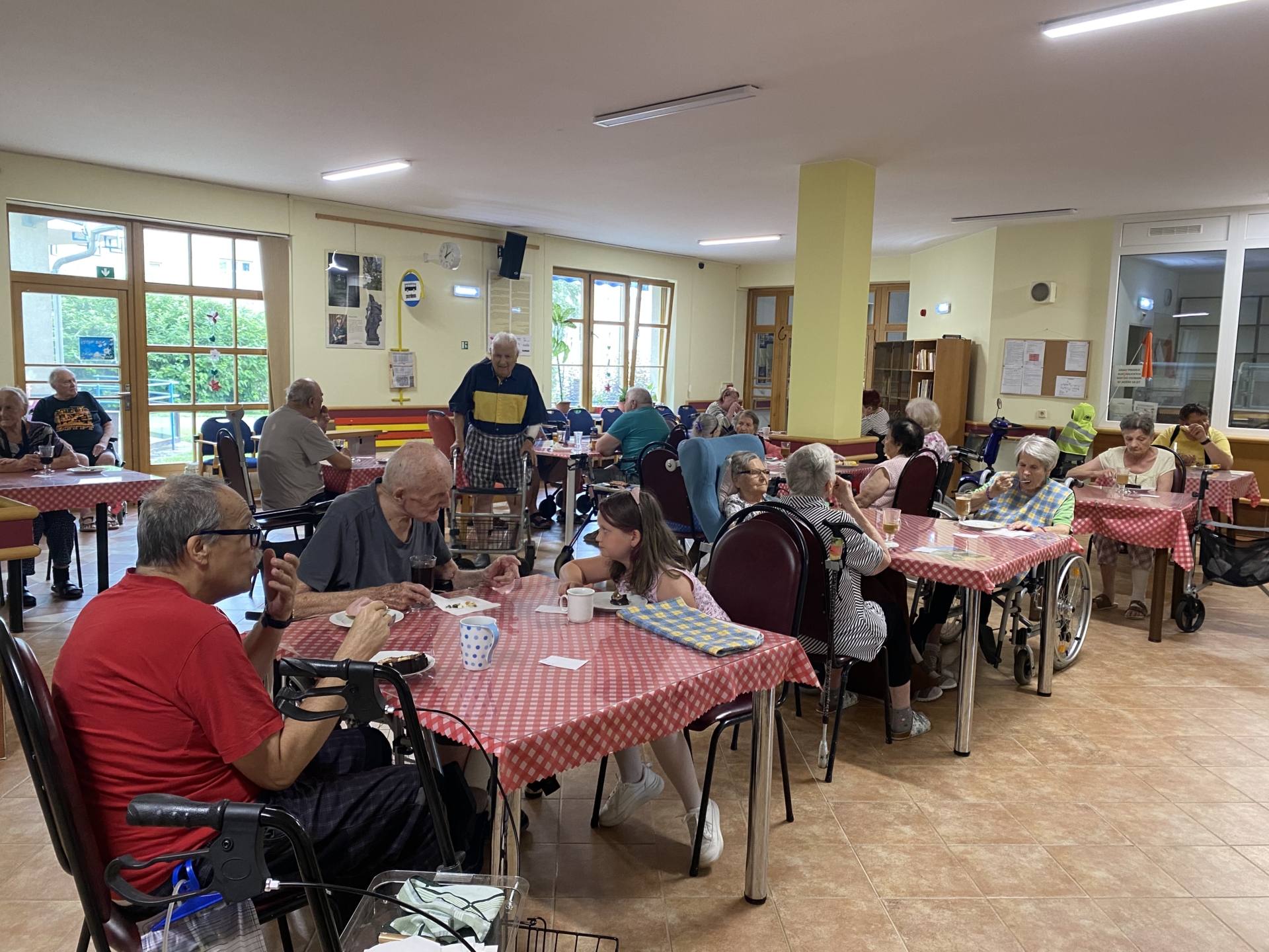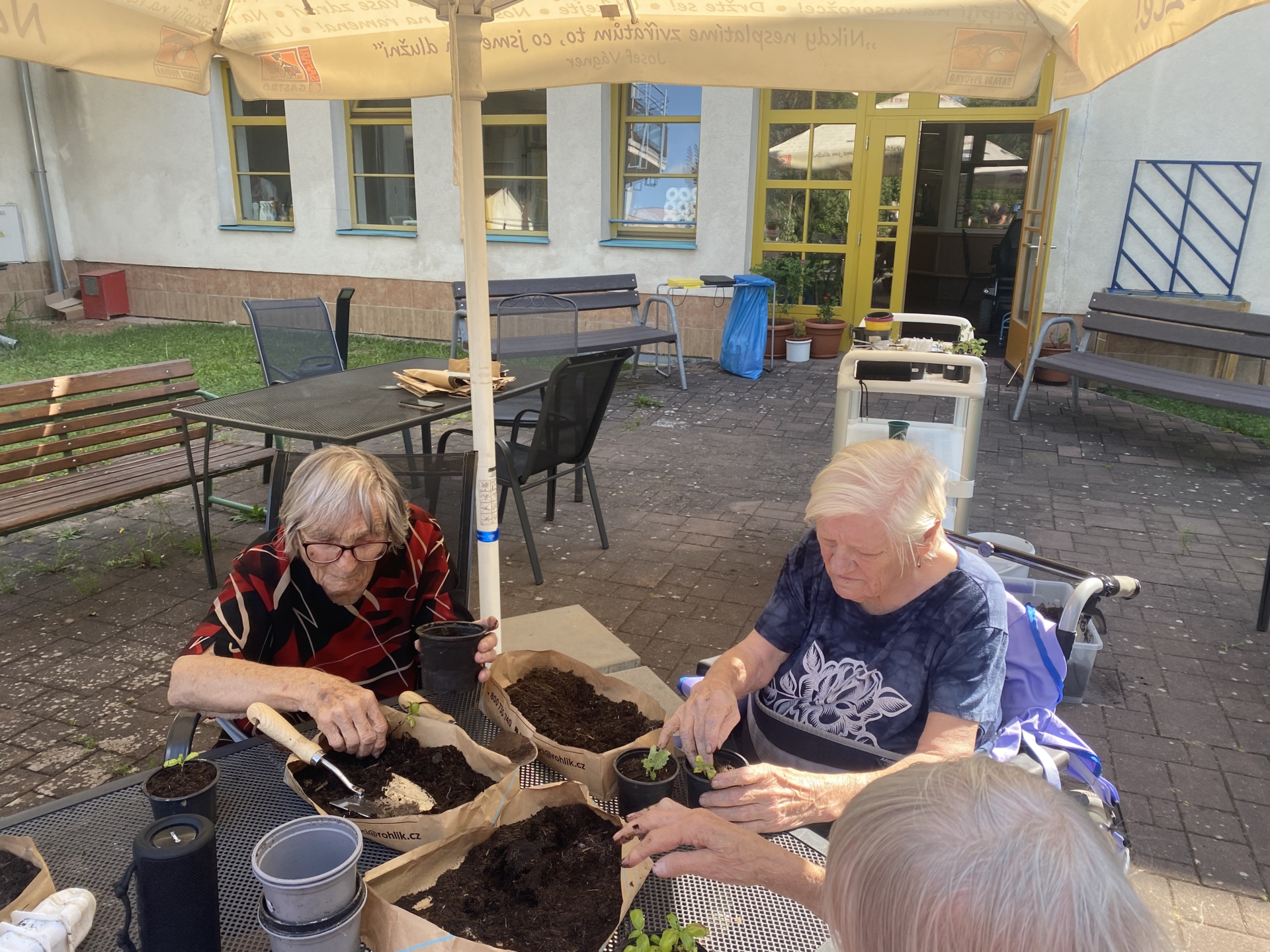 Pomalu se nám chýlí prázdniny do svého konce, nicméně u nás v Domově se to různými akcemi a aktivitami jen hemží. Pravidelně se nám tu každý týden střídá kavárnička se zmrzlinovými poháry. Uživatelé si tak mohou pochutnat na dobré kávě, zákusku či chlebíčku a další týden zase na zmrzlině s ovocným rozvarem a šlehačkou, která v těchto horkých letních dnech je velký hit. Jednou za 14 dní ve středu dopoledne nám zaváží nákupy dovážková služba Rohlik.cz, se kterou jsme spokojeni a vše funguje, jak má. Jak jsme již psali v minulých příspěvcích konala se Zahradní slavnost, navštívili jsme restauraci naší bývalé pracovnice Jany a postavili si retro stan, kde jsme s uživateli strávili volný čas. Nezapomněli jsme ani na oslavu červencových narozenin našich uživatelů, někteří se v rámci individuálních aktivit dočkali i vlastního narozeninového dortu. Navštívila nás paní kadeřnice, která nám vypomohla přes prázdniny, od září by k nám opět měli chodit studenti místní kadeřnické školy. Uživatelé si také mohli zahrát nějakou ze společenských her při Dopoledním klubu či zasoutěžit a zkusit své štěstí při hře Bingo. Proběhla také Zahradní terapie, kde jsme pracovali s bylinkami. Při individuálních aktivitách jsme vyrazili do města ke své kadeřnici i si odpočinout na zahradu Nikolky. Dnes nás navštívili prodejci textilu, takže si uživatelé mohou obměnit šatník a koupit nějaké pěkné nové kousky. V pondělí budeme moci ochutnat letošní burčák a ve středu nám dorazí zazpívat pan Slavík, tak se již na obě menší akce těšíme. Užijte si posledních pár dnů prázdnin.