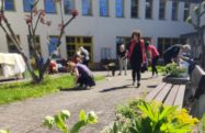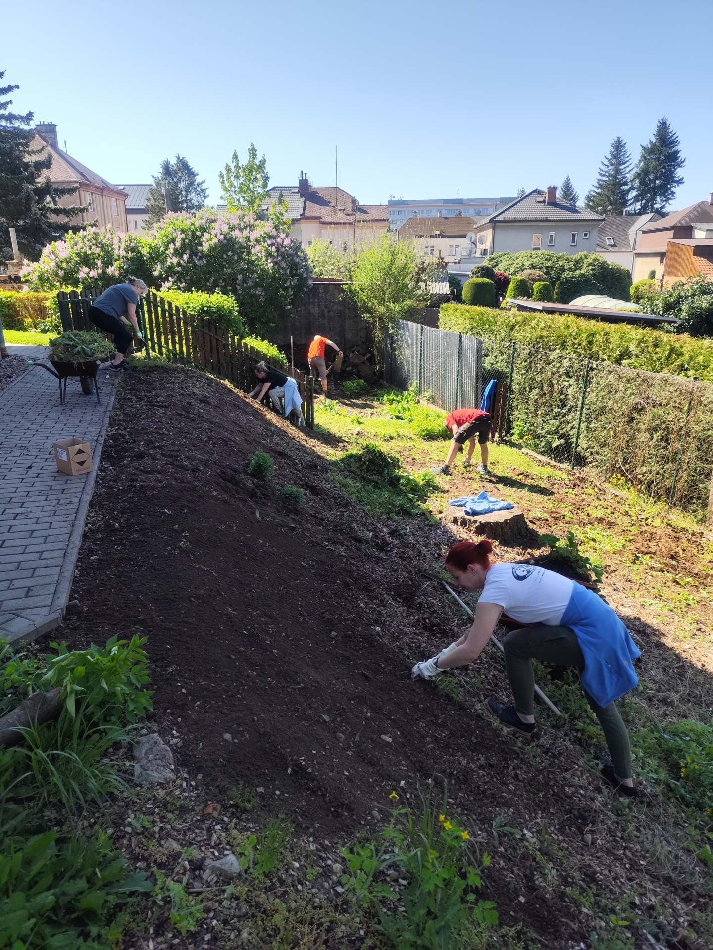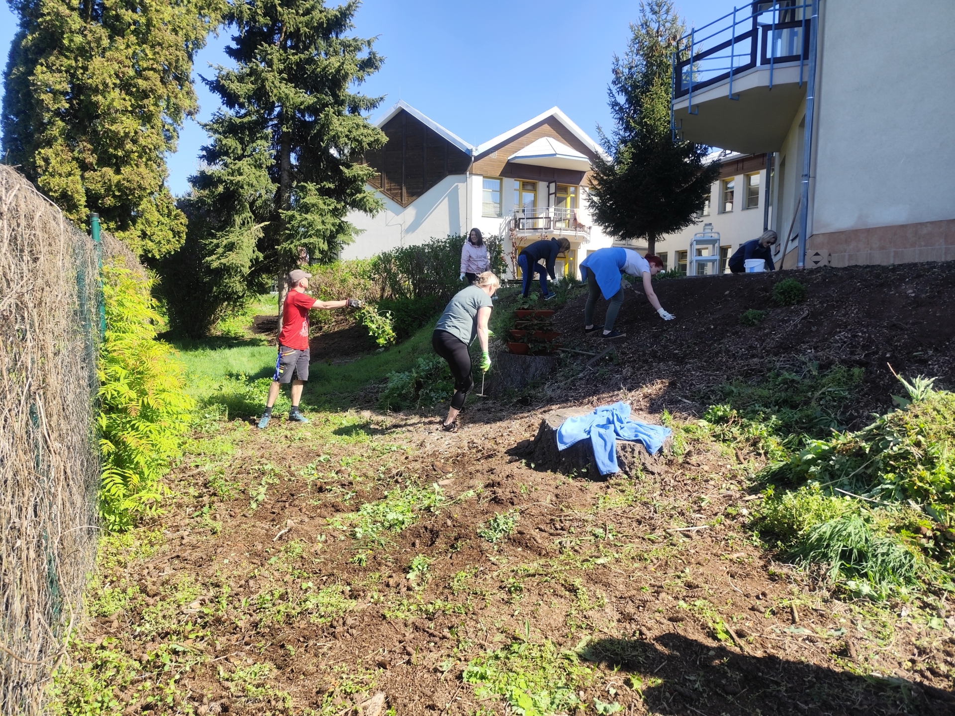 O den dříve se sešli zaměstnanci Domova, kteří vyměnili klávesnici a myš od počítače za lopatu, hrábě a další zahradní načiní. Zúčastnili se totiž tradičního jarního úklidu zahrady. Tak se plelo, sekalo, hrabalo o sto šest. Udělalo se dost práce a výsledek můžete posoudit sami již za měsíc na akci Vítání léta, kam všechny srdečně zveme.