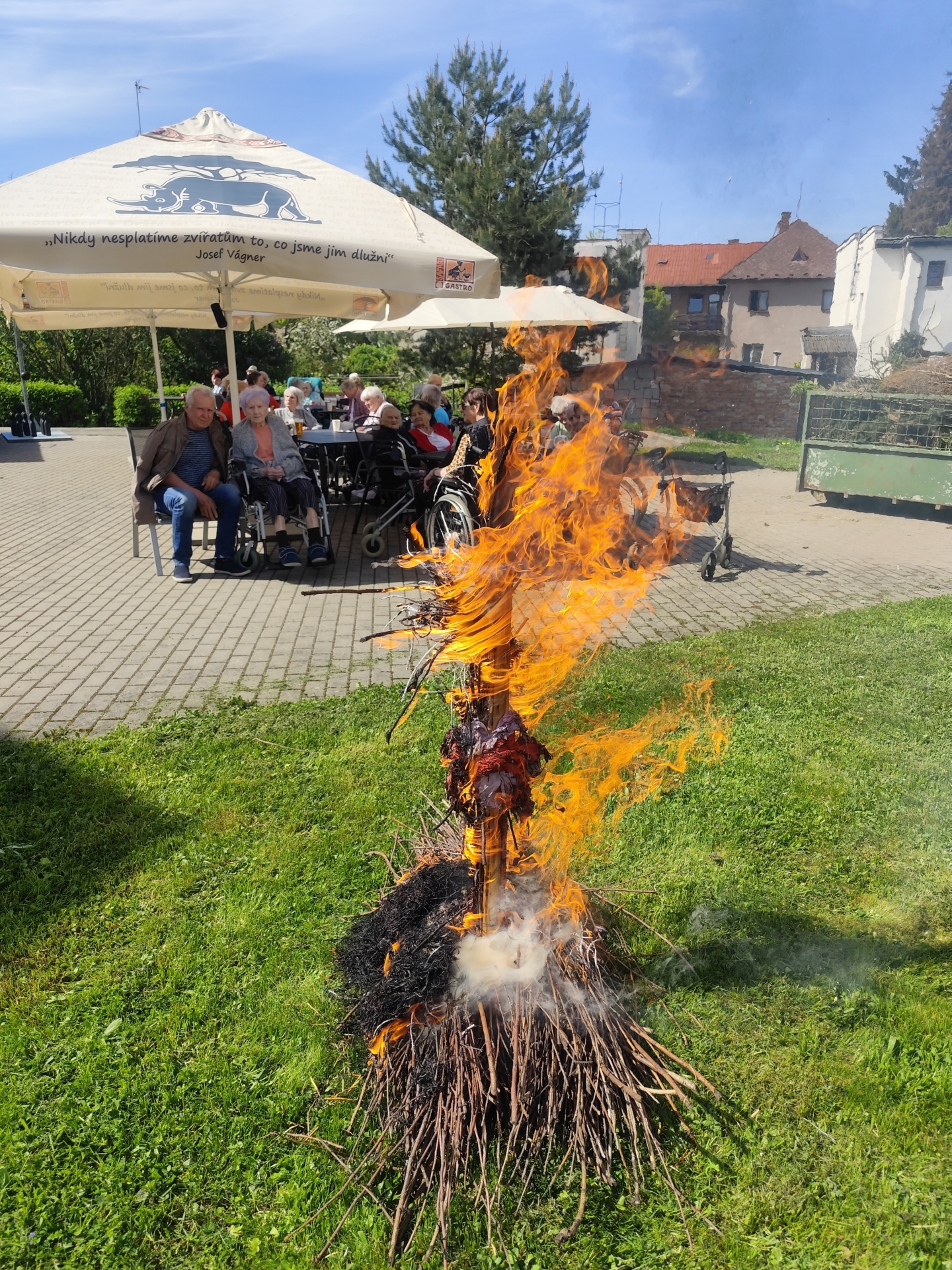Včera jsme si společně s našimi uživateli užili pohodové slunečné odpoledne na zahradě Domova, kde jsme si pochutnali na pivečku a špekáčcích za doprovodu oblíbených písniček. Celou akci z povzdálí sledovala a vše kontrolovala čarodějnice, kterou připravily aktivizační pracovnice. Tu jsme na základě tradic zapálili, abychom odehnali zlé síly a přivítali jaro.